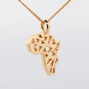 Trage diesen 18 Karat Gold Anhänger mit Stolz und lasse dich von der symbolischen Kraft des afrikanischen Kontinents inspirieren. Er erinnert dich an die Geschichte und das Erbe Afrikas sowie an die Bedeutung von Großzügigkeit und Wohlstand. Der Anhänger ist ein zeitloses Schmuckstück, das sowohl zu formellen Anlässen als auch im Alltag getragen werden kann und jedem Outfit einen Hauch von Eleganz verleiht.